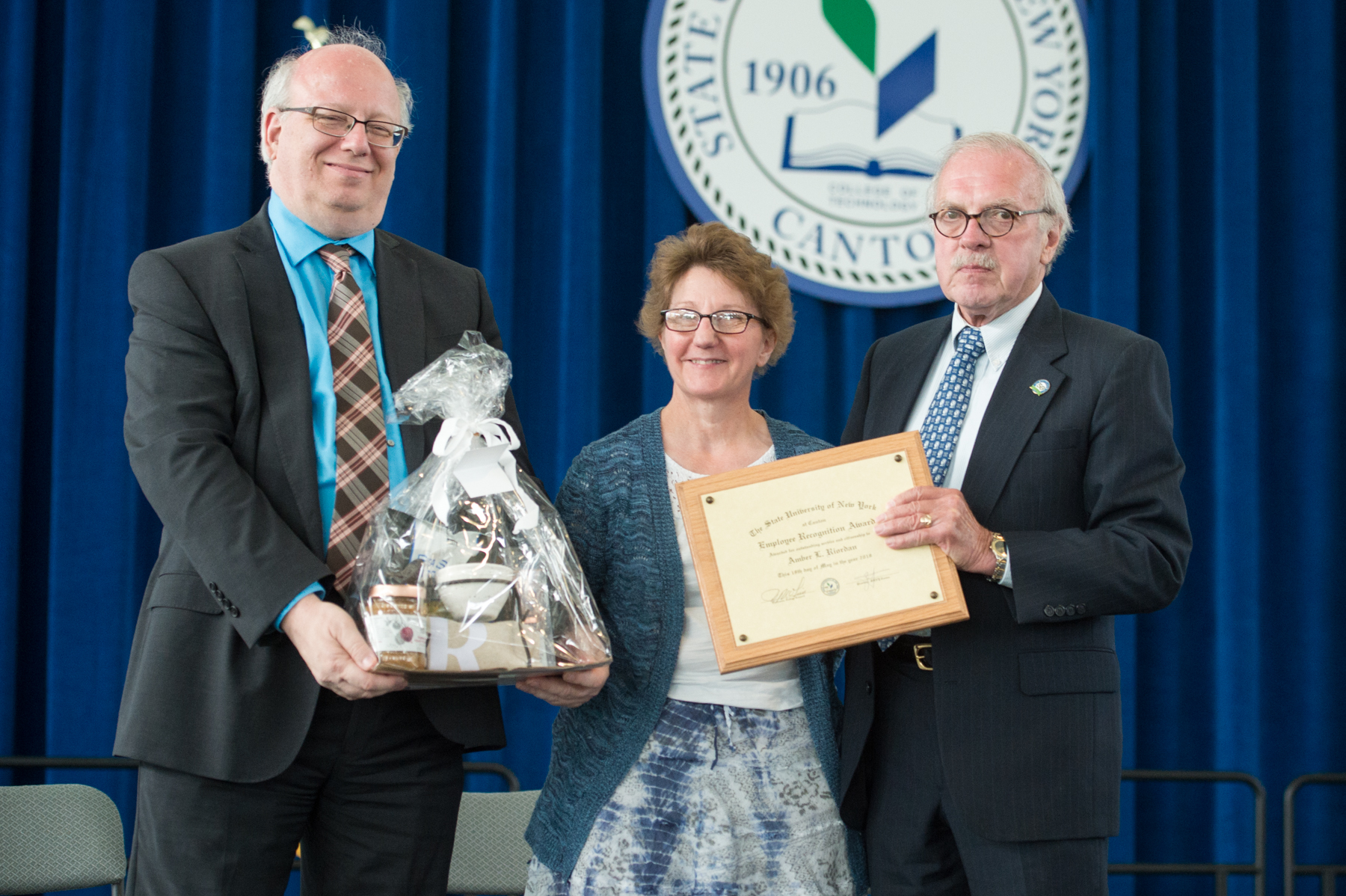 The Excellence in College Service Award is given annually to SUNY Canton non-teaching professional employees, and the Employee Recognition Award is presented to members of SUNY Canton's classified staff. Both receive a plaque and a gift from the College Council.