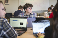 Philemon Mulunda, a Physics major from St. Lawrence University was building a website for his team's proposed company. "We're trying to grow a duckweed farm in the St. Lawrence River to absorb heavy metals and pollutants out of it, and then sell that to biomass manufacture, or biomass fuel manufacturers," he said. "They would turn what we sell into a fuel like gas or wood, which people can use for heat."