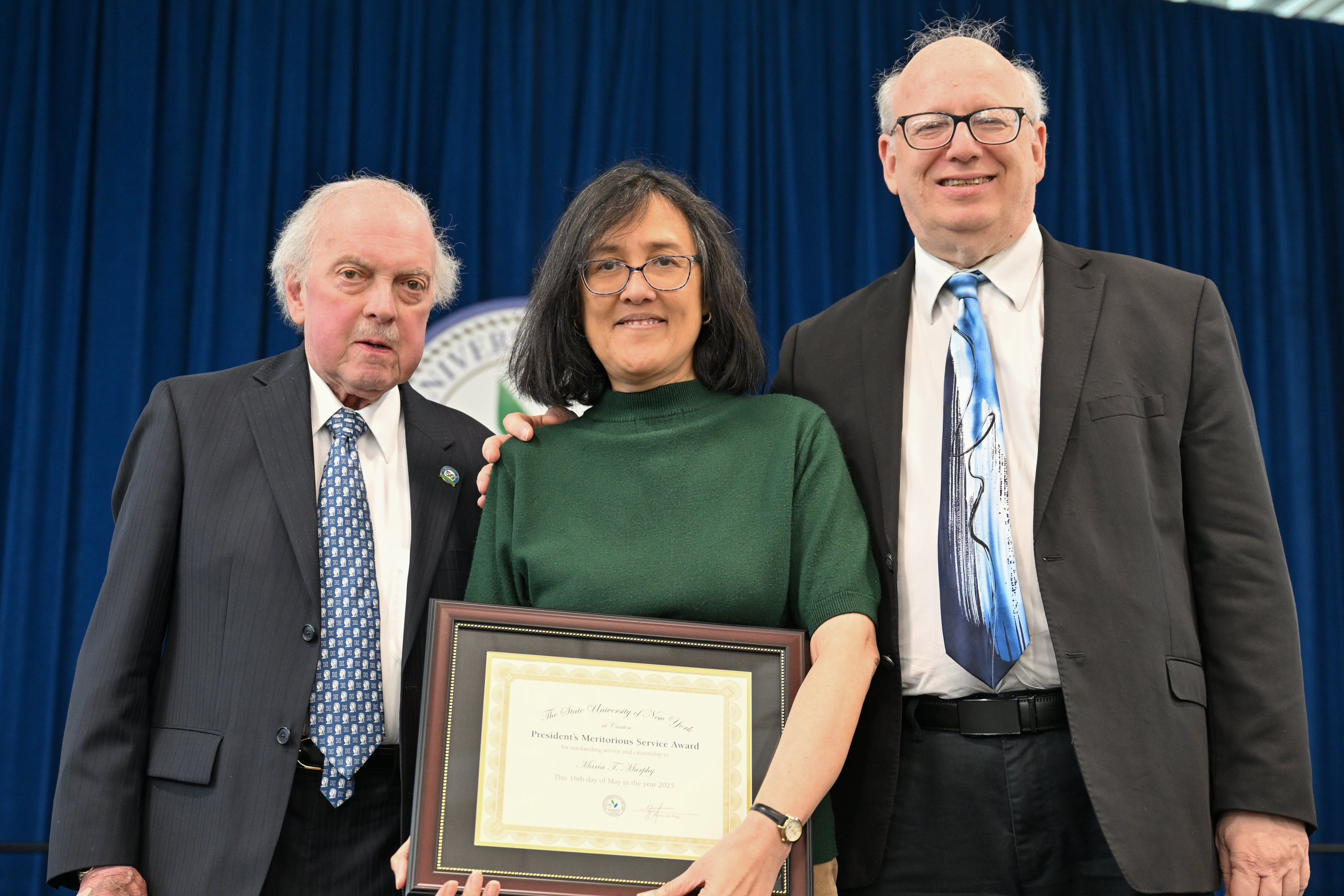 Canton, NY (06/12/2025) — Three SUNY Canton employees were recognized by President Zvi Szafran for their professional achievements at a college-wide awards event in May.